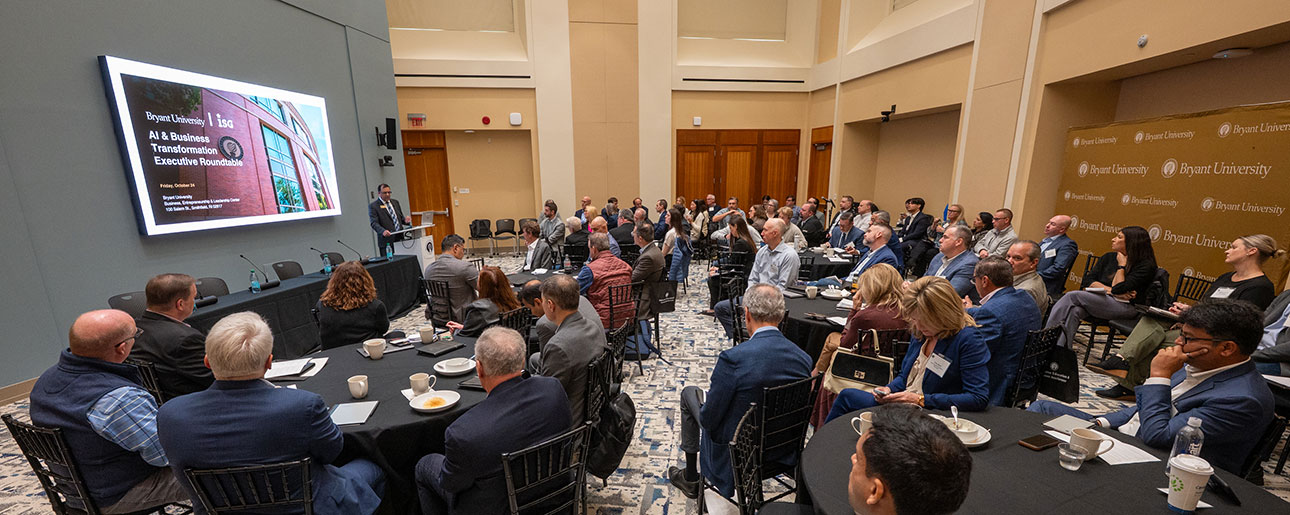 Bryant University and ISG convened visionary leaders from business and academia to explore how artificial intelligence is transforming industries and shaping the future of work. Through insightful keynotes and collaborative sessions, participants gained the tools to lead innovation responsibly and strategically.